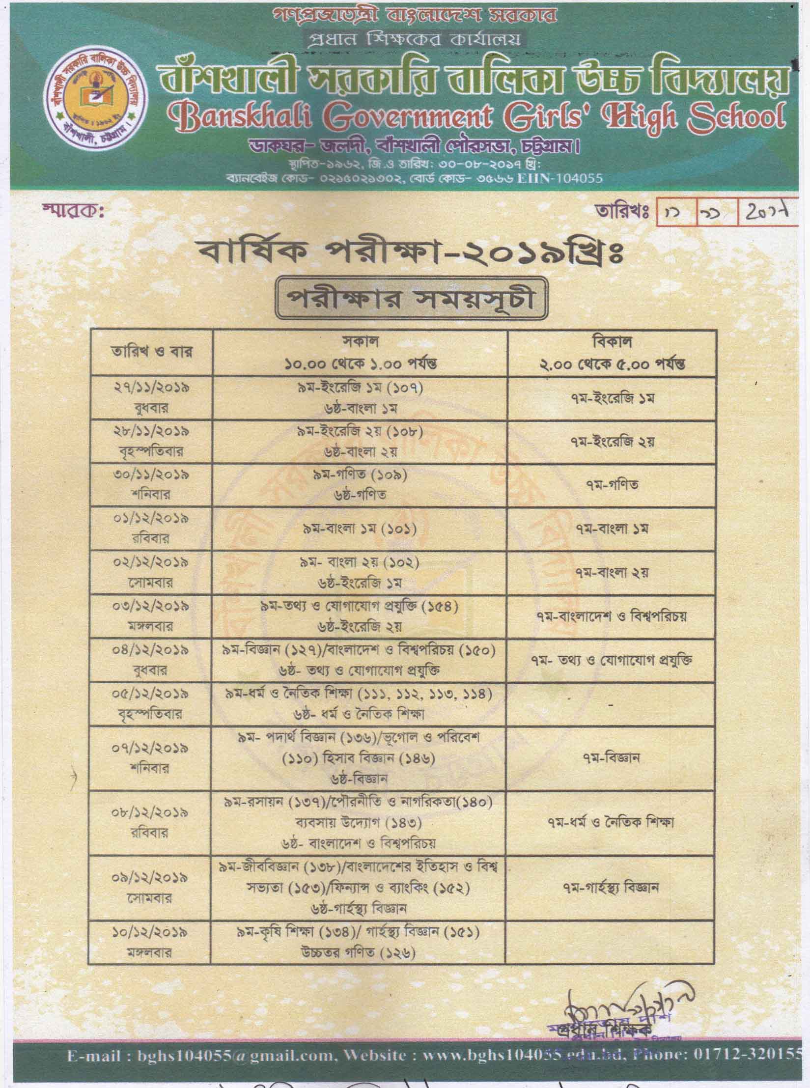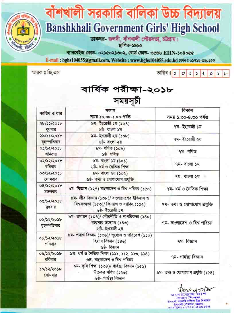 5 NINE A বার্ষিক পরীক্ষার রুটিন-২০১৯